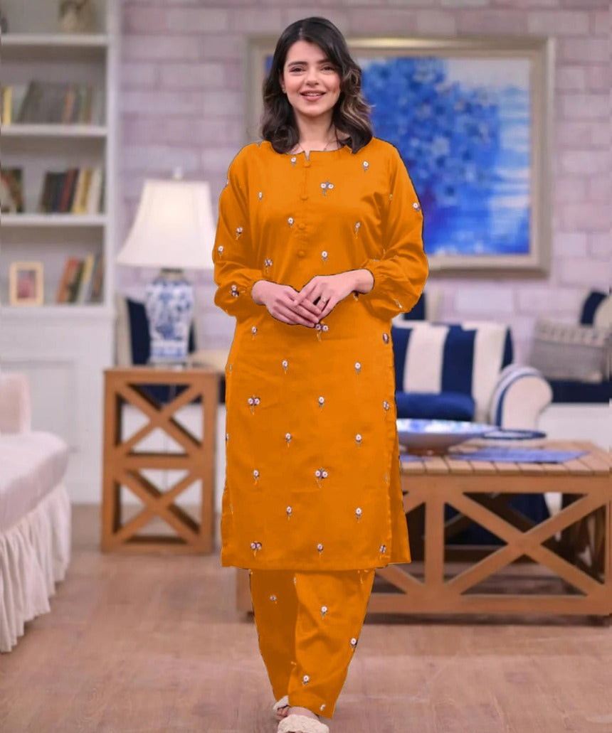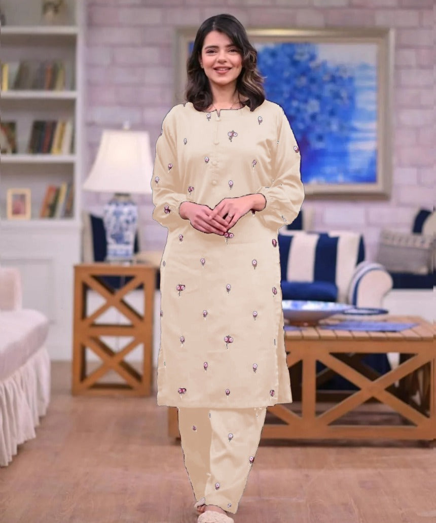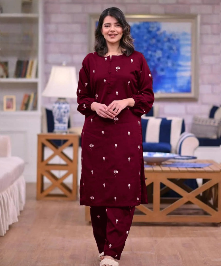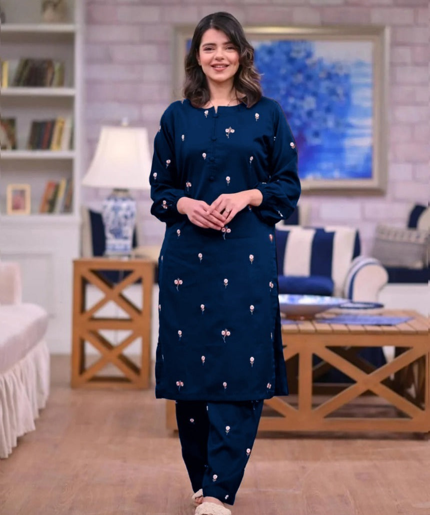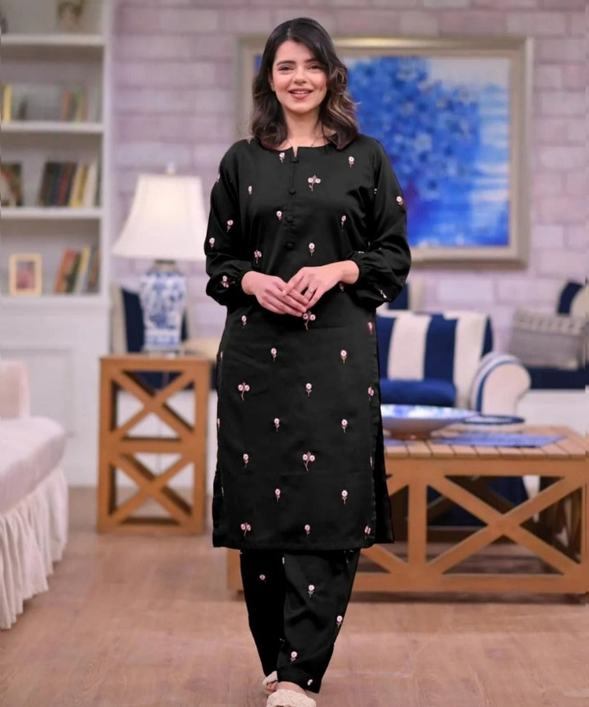 Multi Flower Embroidered Shirt With Full Embroidered Flapper 2Pcs