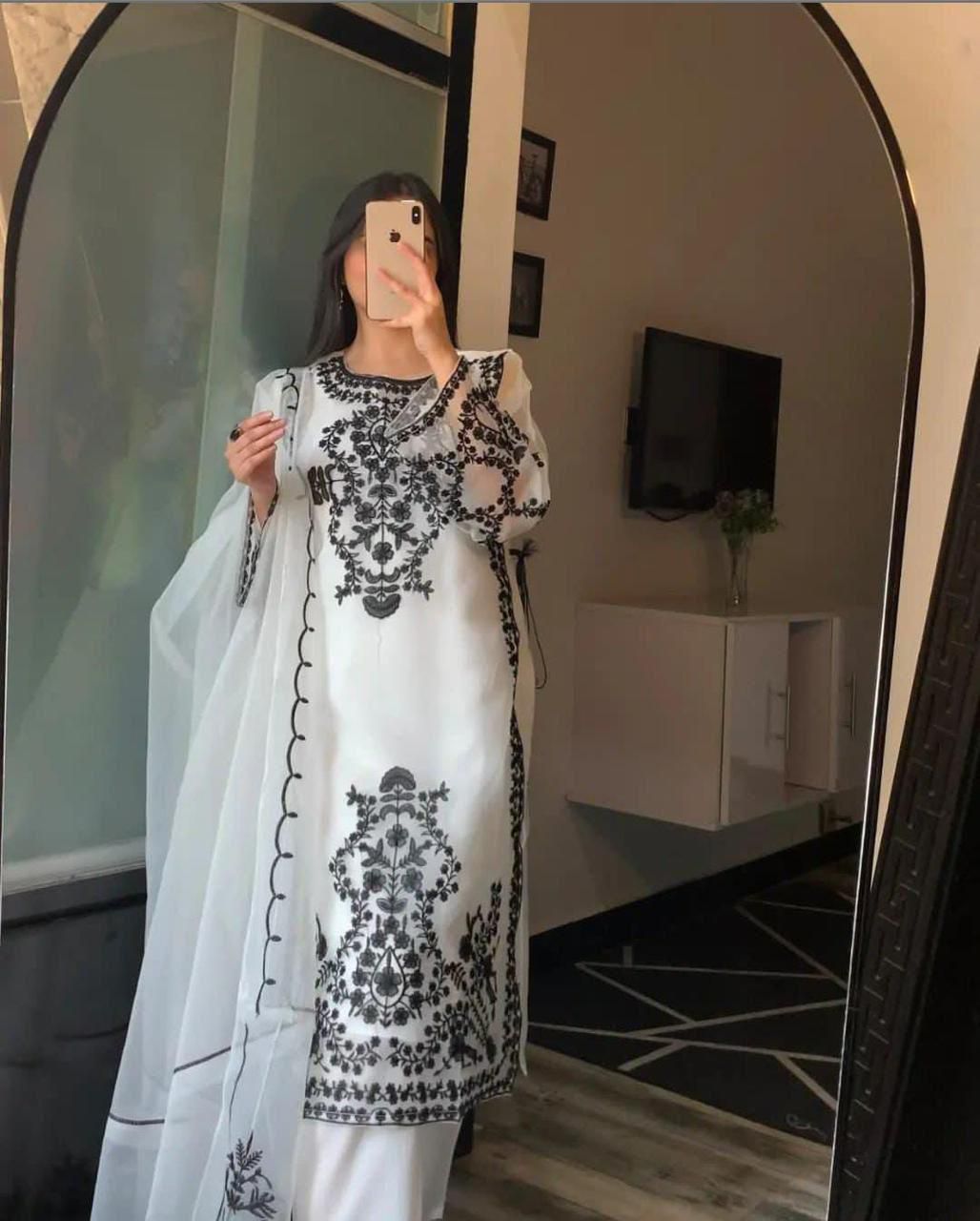 Neck,Sleeves,Daman Embroidered Shirt With Fully Embroidered Dupatta 3Pcs